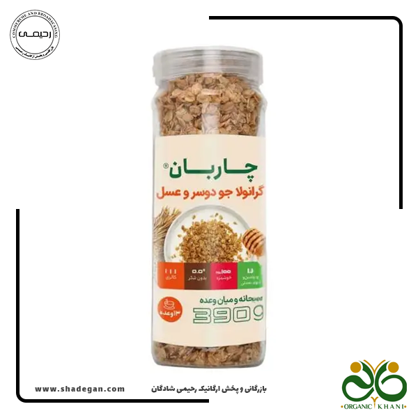 گرانولا جو دوسر و عسل چاربان بدون طعمدهندههای مصنوعی، انتخابی مطمئن برای مصرف روزانه است.